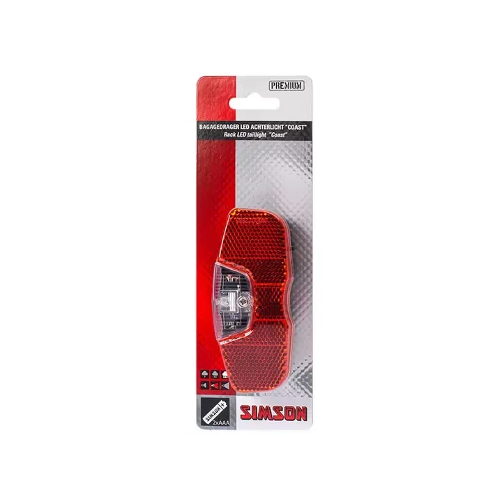 Dit Simson Batterij bagagedrager achterlicht 'Coast'' is een premium kwaliteit achterlicht. Het achterlicht is onderdeel van de Simson Premium lijn, welke bestaat uit zeer hoogewaardige kwaliteitsproducten. De zeer zuinige rode LED heeft een brandtijd tot maar liefst 100 uur! Het robuuste achterl...