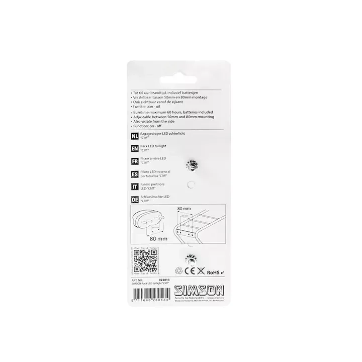 Dit Simson Batterij bagagedrager achterlicht ''Cliff'' is een hoogwaardig premium kwaliteit achterlicht. Het achterlicht heeft een modern design met geïntegreerde reflector. De krachtige rode LED geeft een heldere lichtuitstraling voor optimale zichtbaarheid, zelfs aan de zijkanten van de fiets....