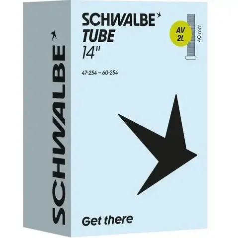 Schwalbe binnenband AV2L, geschikt voor 14 inch, in de ETRTO maat 47/60-254. Voorzien van een 40mm lang Auto/Schrader ventiel. Schwalbe binnenbanden zijn 100% volledig recyclebaar.