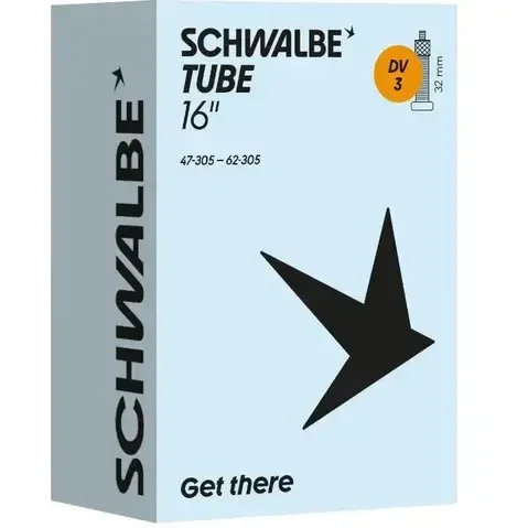 Schwalbe binnenband DV3, geschikt voor 16 inch, in de ETRTO maat 47/62-305 Voorzien van een 32mm lang Hollands/Dunlop ventiel. Schwalbe binnenbanden zijn 100% volledig recyclebaar.