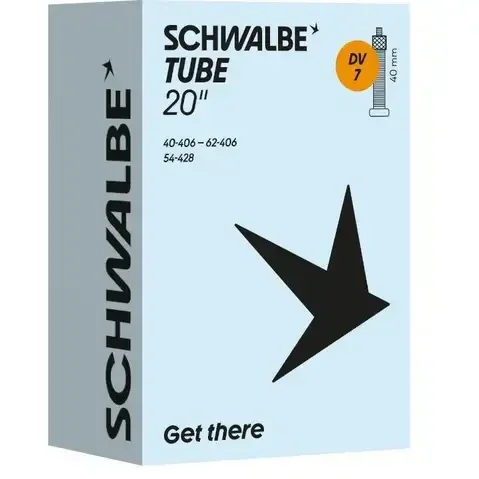 Schwalbe inner tube Wide 20 Inch Dutch - DV7/40-406, 47-406, 50-406, 54-406, 57-406, 60-406, 62-406*, 54-428. Schwalbe inner tubes are reliable. Bicycle retailers appreciate it for its high reliability. Each tire is inflated at the factory and tested for airtightness for 24 hours. The tire holds the air pressure for longer. In production, Schwalbe requires a very high butyl content and a very high cleanliness of the material. For example, the Schwalbe inner tube retains the air pressure significantly longer than other inner tubes. It is a group tube system: A Schwalbe inner tube is extremely elastic and fits several tire sizes. Because of this, they are called groups of inner tubes. For example, the inner tube with number 19A fits for tire size from 27.5 inches to 29 inches and for the width from 40 to 62mm. Finally, the tire is 100% fully recyclable. Standard version: High reliability, tried and tested for many years. *Not available in the Extralight version.
