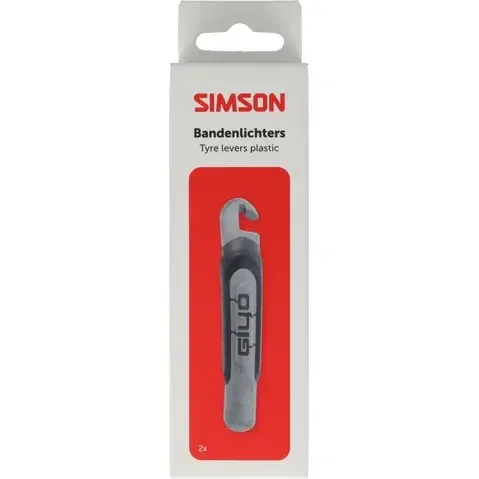 Simson Bandenlichters Kunststof voor het afnemen van een fiets binnenband. De bandenlichters zijn gemaakt van extra sterk kunststof waardoor de binnenband minder snel beschadigd. Klik de uitsparing aan het uiteinde van de bandenlichter om een spaak. Gebruik hierna de tweede bandenlichter en haal vervolgensr de buitenband verder van de velg af. De bandenlichters worden geleverd per twee stuks.